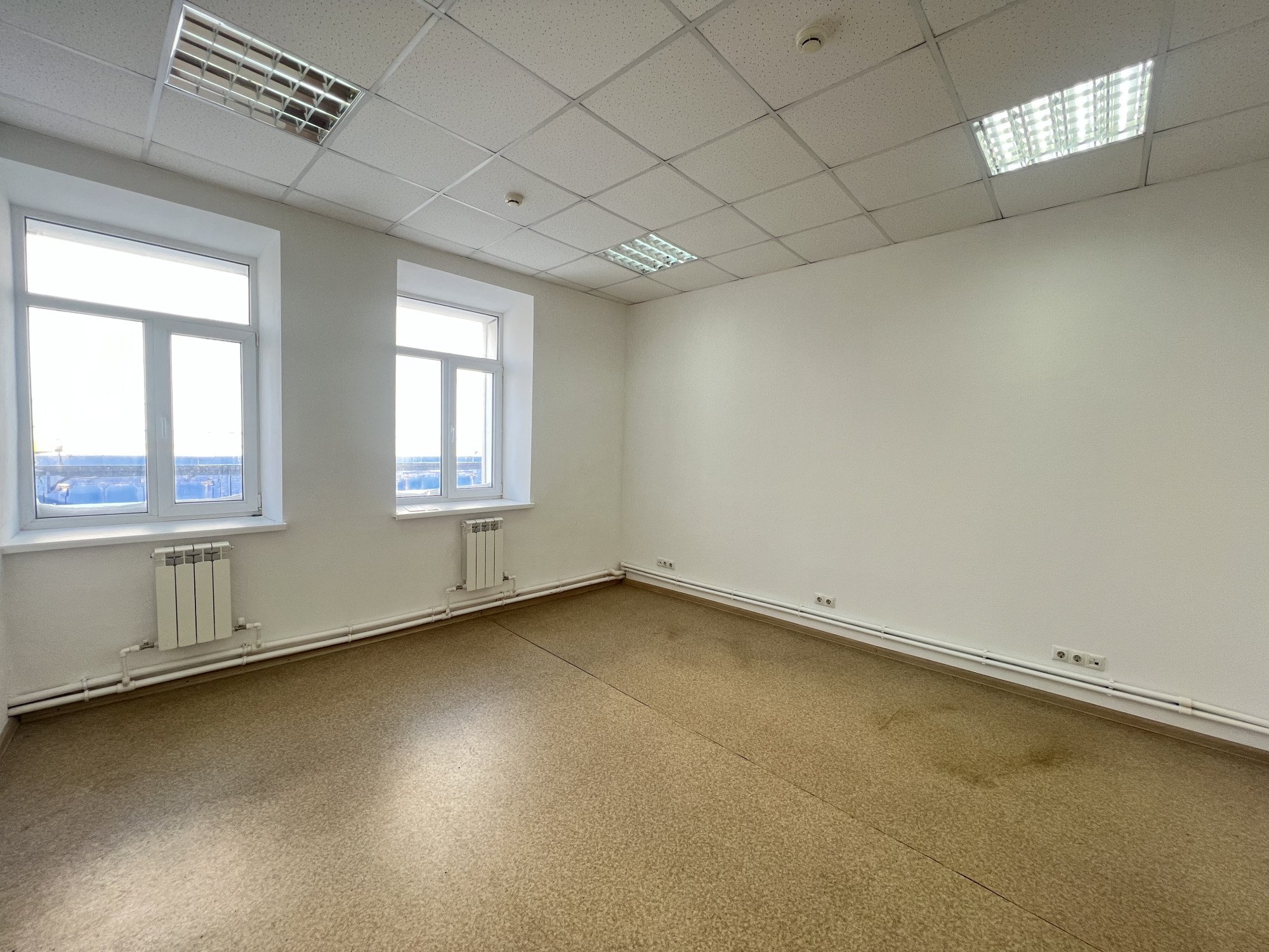 Светлое помещение. Напольное покрытие – линолиум, стены выкрашены в светлые тона качественной краской, потолок – Армстронг, светодиодные светильники, противопожарная система. Ремонт выполнен учитывая нормы СНИП.